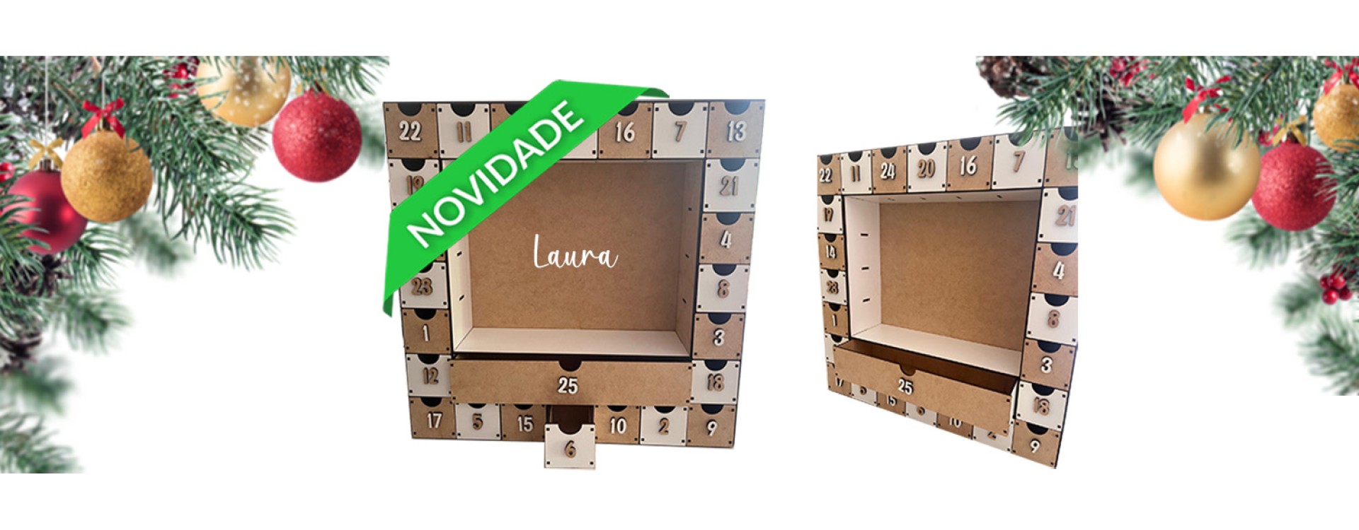 Calendário de Adventos em Madeira MDF Branco e Carft, pode ser personalizado com o nome ...