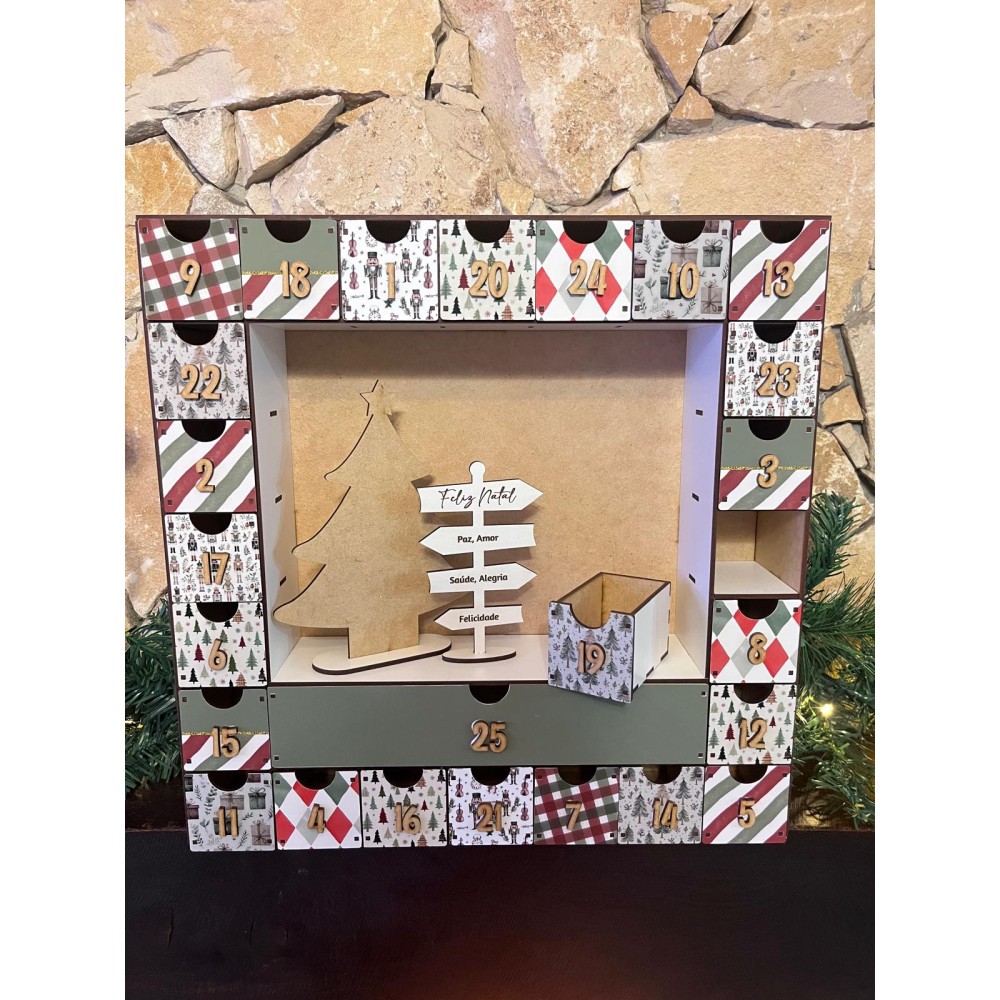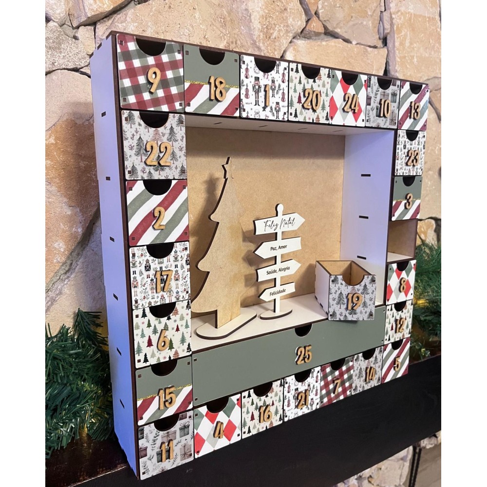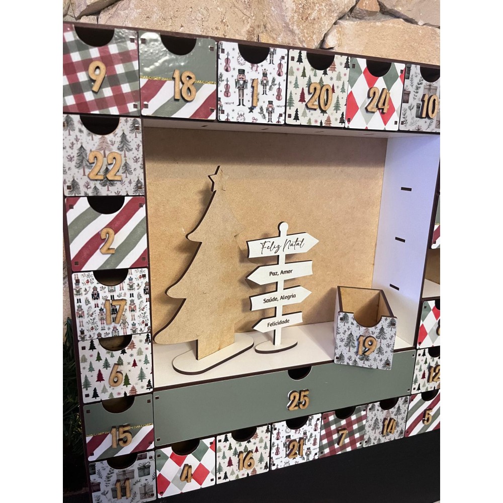 Calendário de Adventos em Madeira MDF Branco e Carft, personalizado